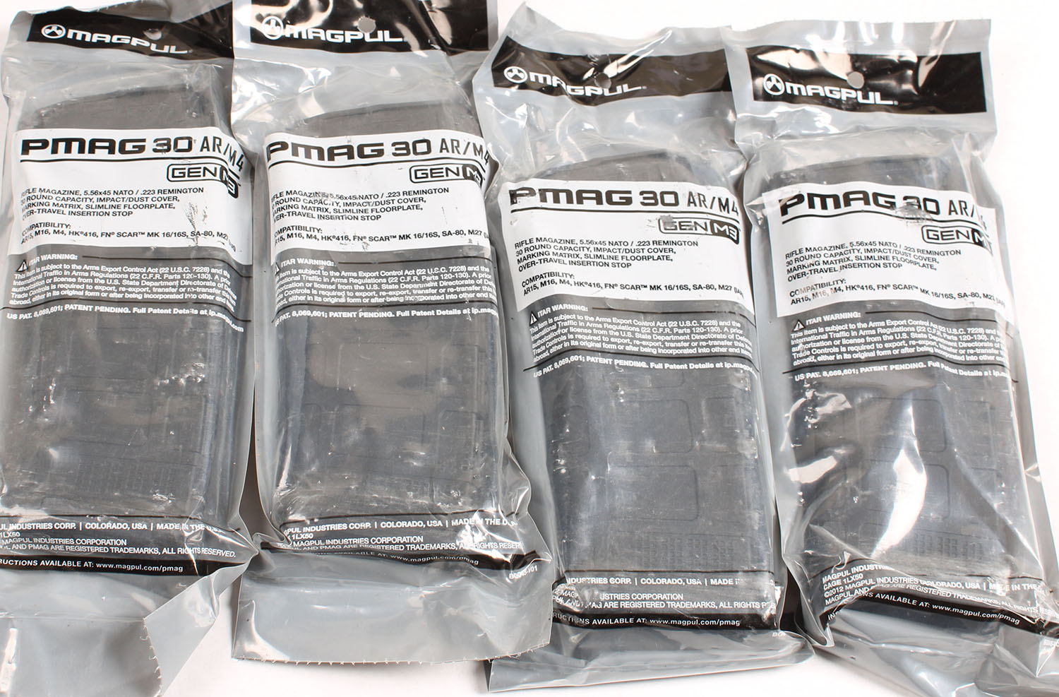 Lot of four, Magpul AR-15 Gen 3 Pmags, Black plastic, 30Rd. Mags, 5.56/.223, all sealed in the original packaging. Grade: Excellent ++ - Value: 30 to 60