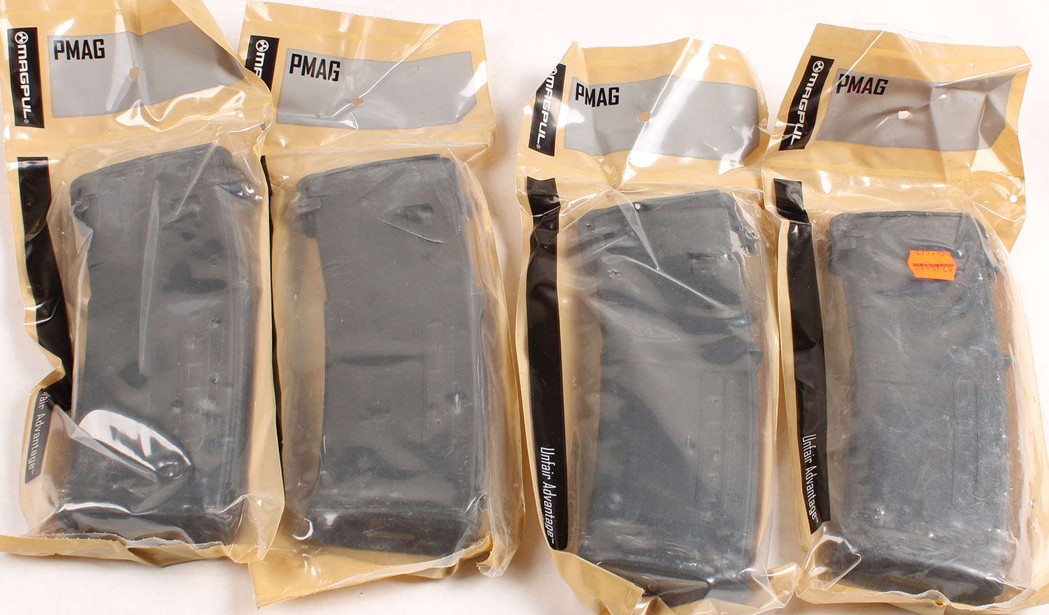 Lot of four, Magpul AR-15 Emags, Black plastic, 30Rd. Mags, 5.56/.223, all sealed in the original packaging. Grade: Excellent ++ - Value: 30 to 60