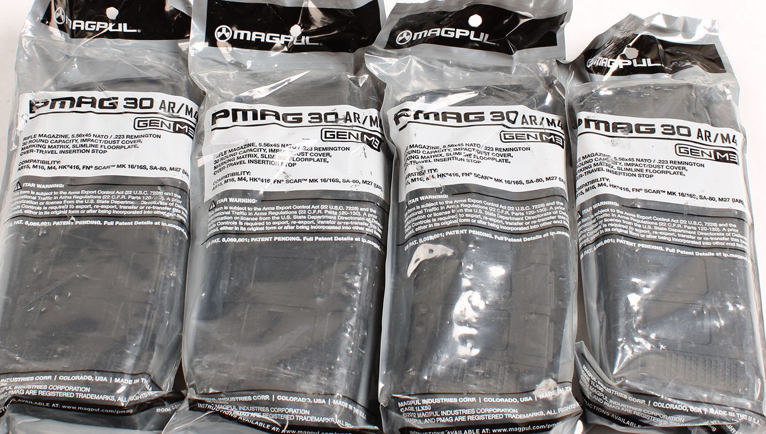 Lot of four, Magpul AR-15 Gen 3 Pmags, Black plastic, 30Rd. Mags, 5.56/.223, all sealed in the original packaging. Grade: Excellent ++ - Value: 30 to 60
