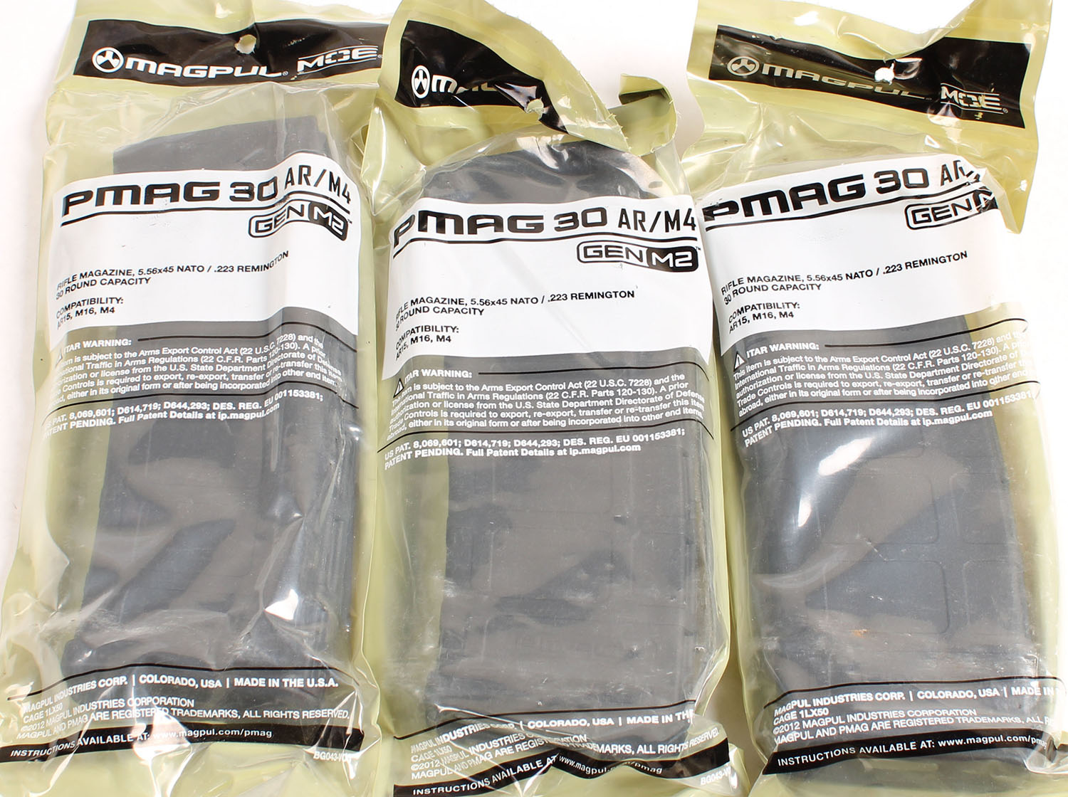 Lot of three, Magpul AR-15 Gen 2 Pmags, Black plastic, 30Rd. Mags, 5.56/.223, all sealed in the original packaging. Grade: Excellent ++ - Value: 20 to 50
