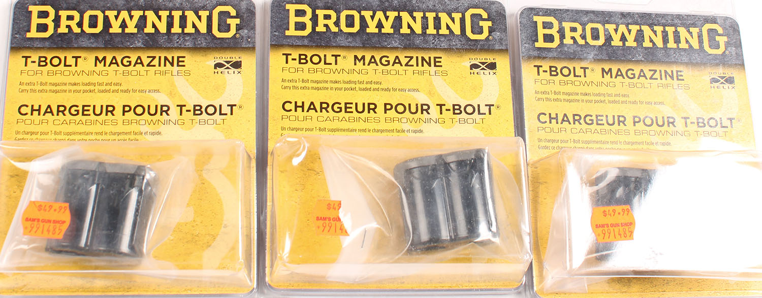 Lot of three, Browning T-Bolt .17HMR/.22WMR 10 Rd. mags, in original packaging. Grade: Excellent - Value: 100 to 200