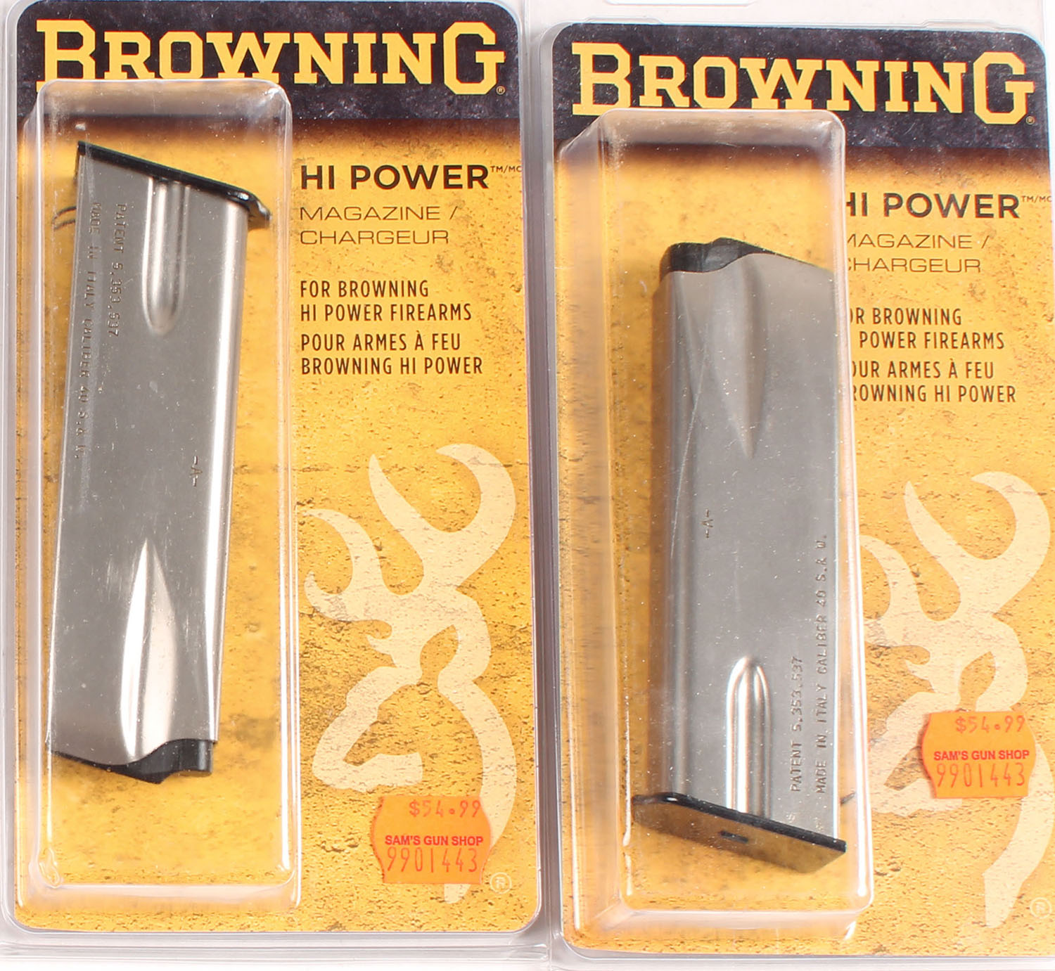 Lot of two, Browning Hi-power .40 Cal 10 Rd. Mags, in original packaging. Grade: Excellent ++ - Value: 50 to 100