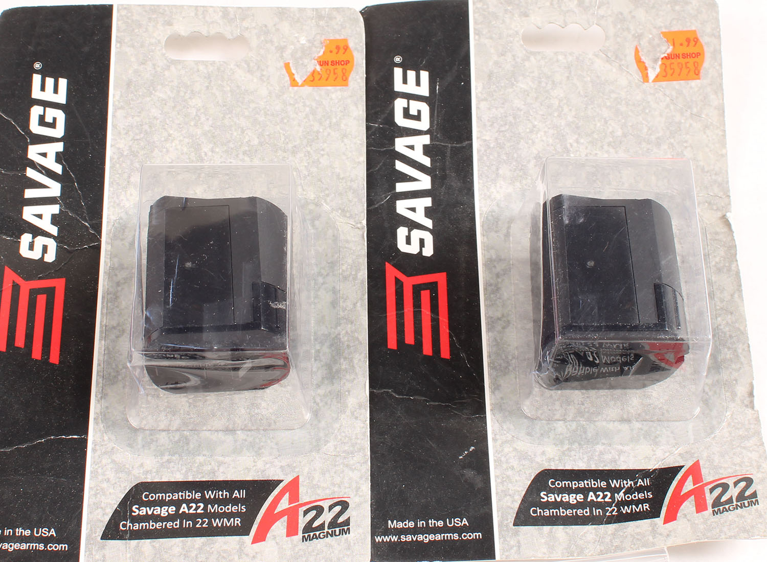 Lot of two, Savage A22 .22 Mag 10 Rd. mags. In original packaging. Grade: Excellent + - Value: 20 to 40