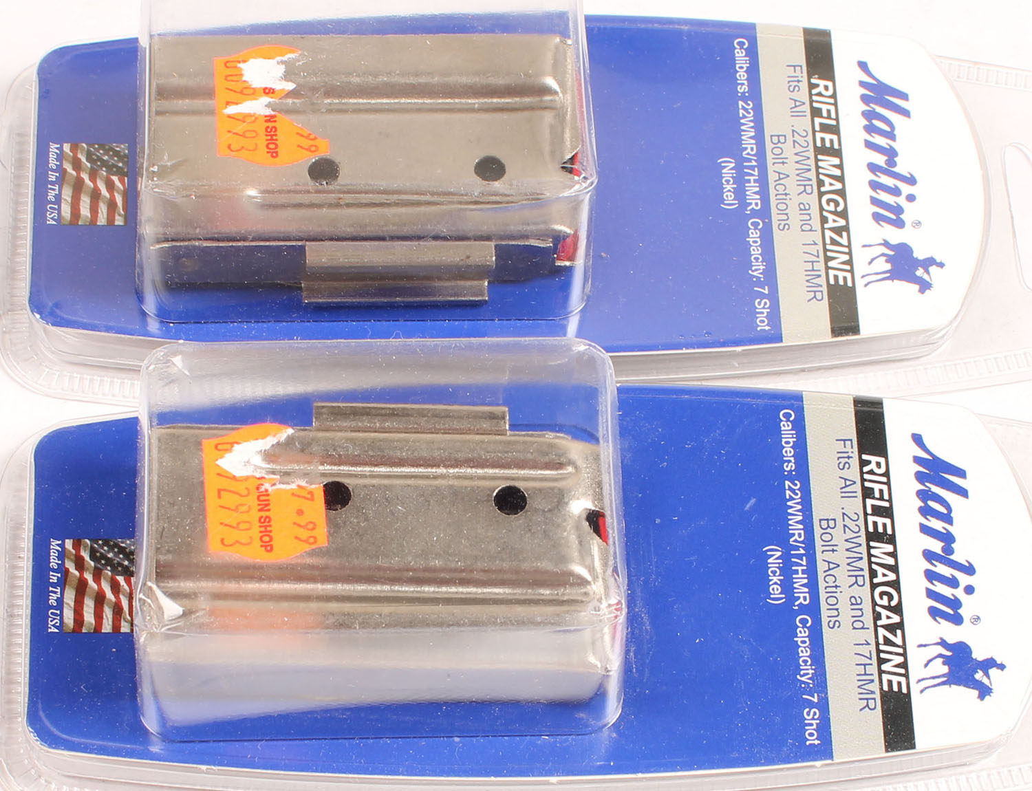 Lot of two, Marlin .22WMR/.17HMR 7Rd. Mags, in original packaging. Grade: Excellent - Value: 20 to 40
