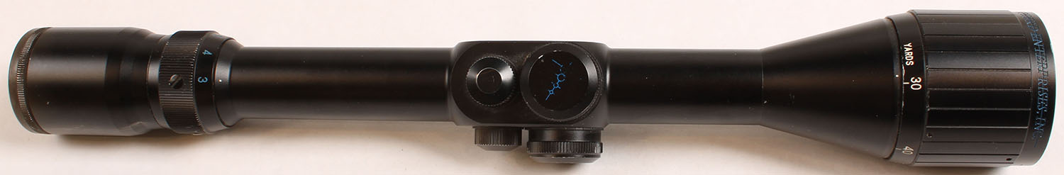 Shepherd, P2, 3-10 x 40mm Variable Magnification Rifle Scope, 1'' Tube, First Focal Plane 18'' Stadia Reticle, Fast Focus Eyepiece, 3'' to 3.5'' of eye relief, 14 Inches Long, 17 Ounces, Low Height Capped Turrets, 1/4 MOA Clicks are positive and somewhat audible, Multi-Coated Lenses are clear, aluminum housing has some wear. Grade: Excellent - Value: 200 to 600