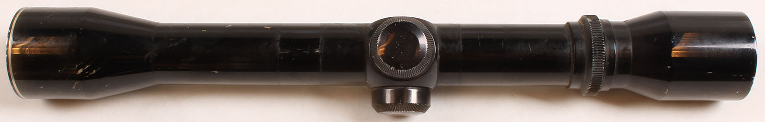 K-mart, All-Pro, 4x rifle scope, capped turrets, fixed parallax, adjustable focus, 1 inch tube. Grade: Very Good ++ - Value: 20 to 60