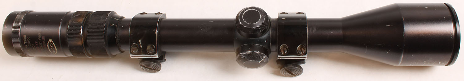 Scope, Model 781-010, 3-9x 40mm, nitrogen filled, capped turrets, adjustments are tight, fixed parallax, adjustable focus, I inch tube, comes with scope rings. Grade: Very Good ++ - Value: 20 to 90