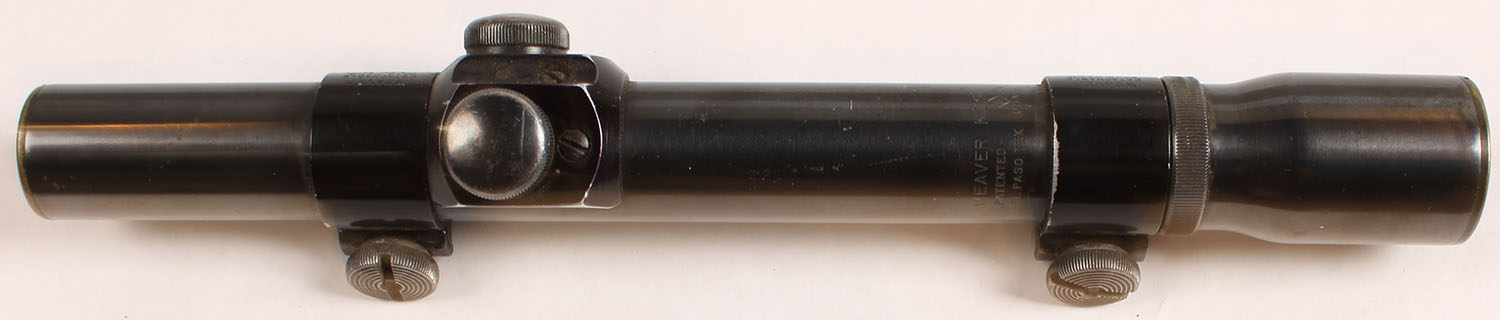 Weaver, K2.5, 2.5x, capped turrets, fixed parallax, adjustable focus, 1 inch tube, lens is fuzzy & hard to see through, comes with weaver scope rings. Grade: Very Good ++ - Value: 10 to 50