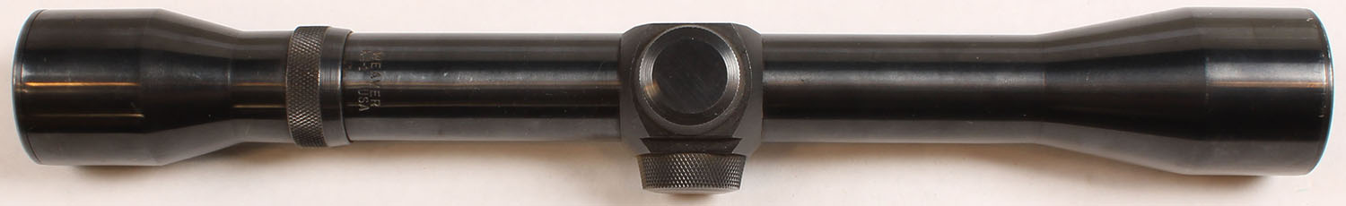 Weaver, K4-1, 4x, capped turrets, fixed parallax, adjustable focus, 1 inch tube. Grade: Excellent - Value: 40 to 80