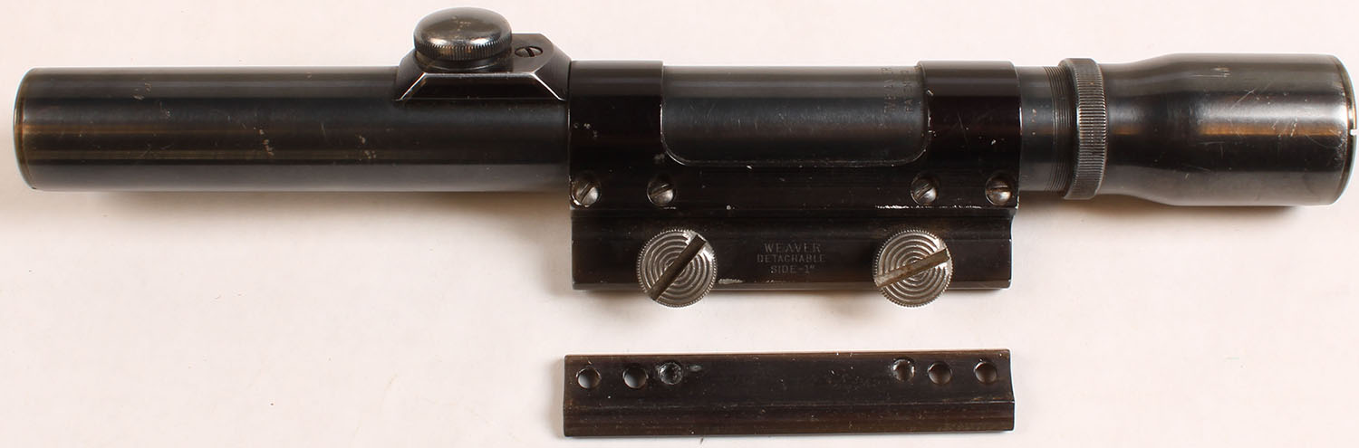 Weaver, K2.5, 2.5x, capped turrets, fixed parallax, adjustable focus, 1 inch tube, lens is slightly fuzzy, comes with weaver scope mount. Grade: Very Good ++ - Value: 30 to 60