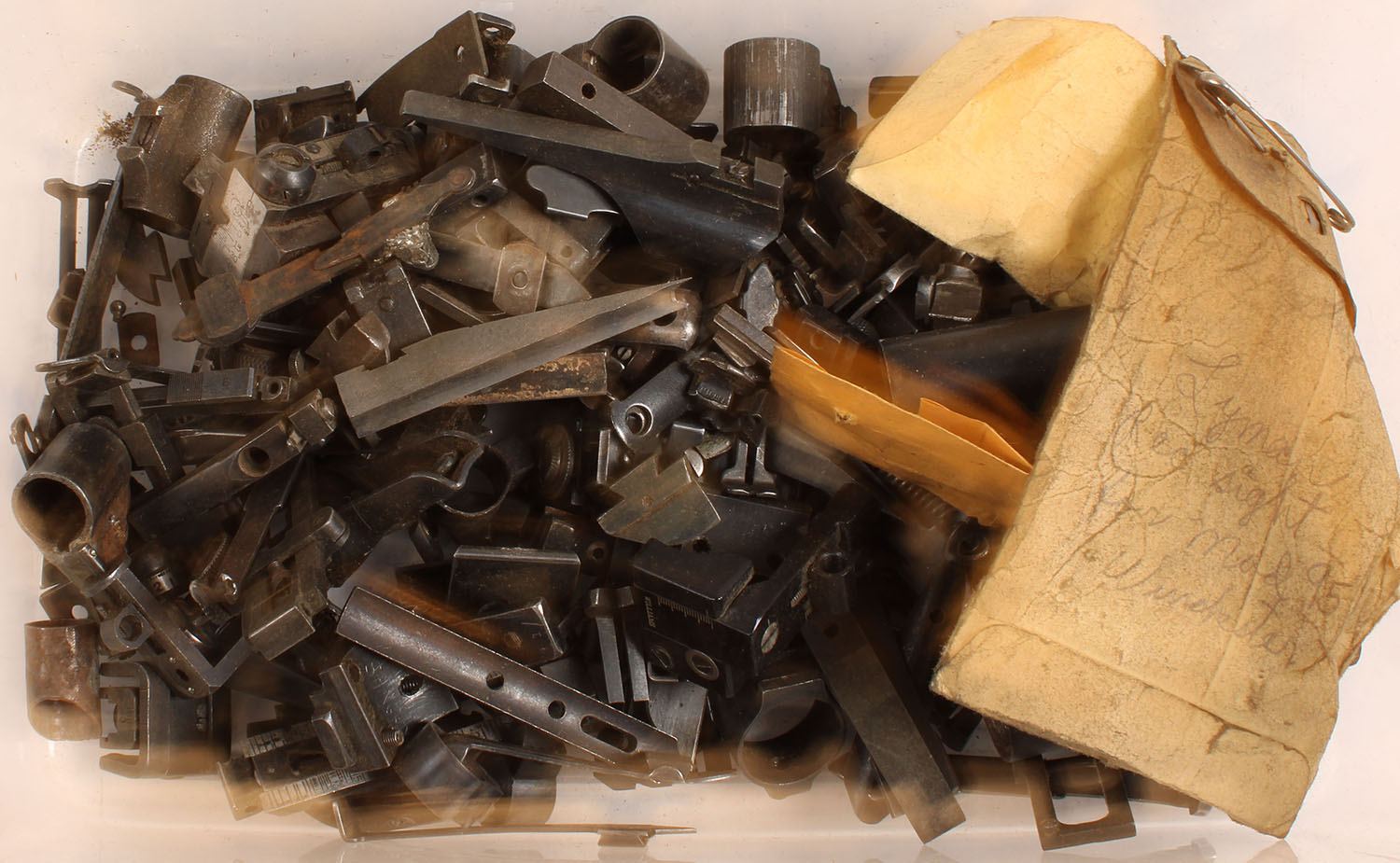 Lot of gun parts, lots of old sights. Grade: Very Good - Value: 20 to 200