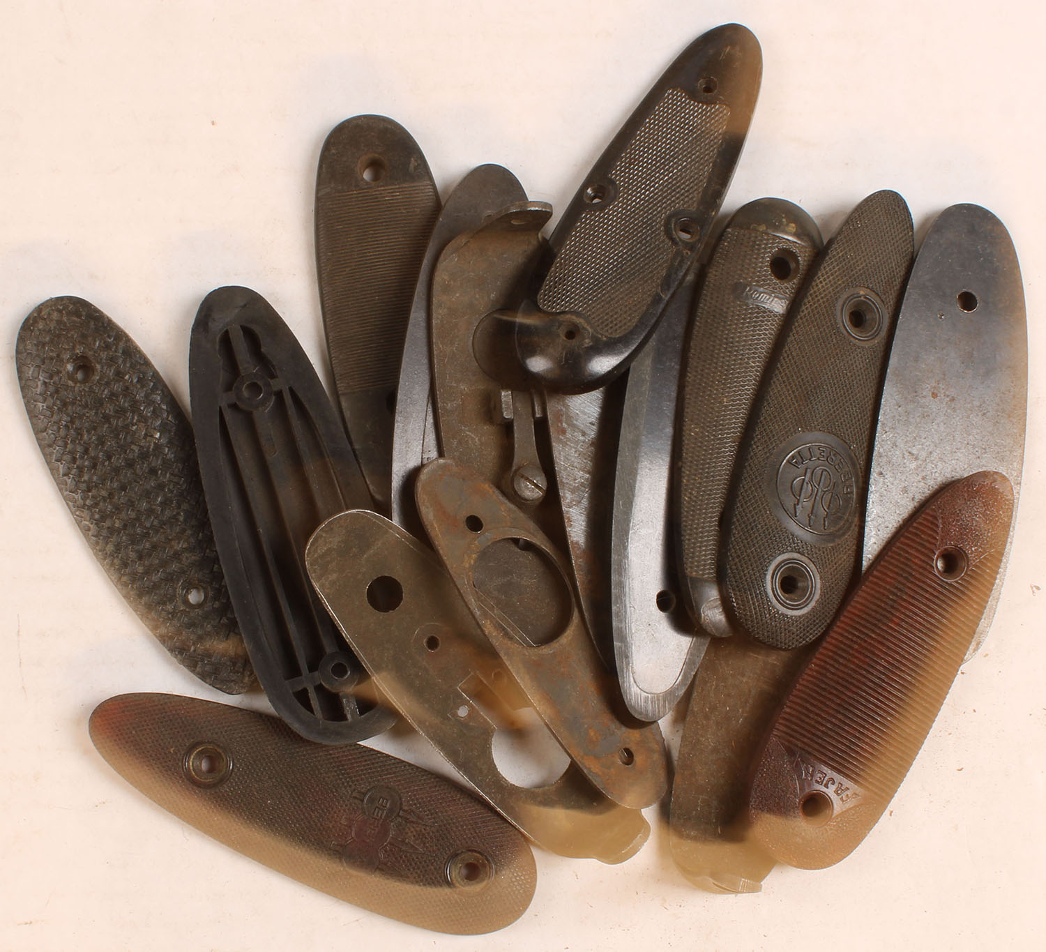 Large lot of antique butt plates. Grade: Very Good - Value: 10 to 50