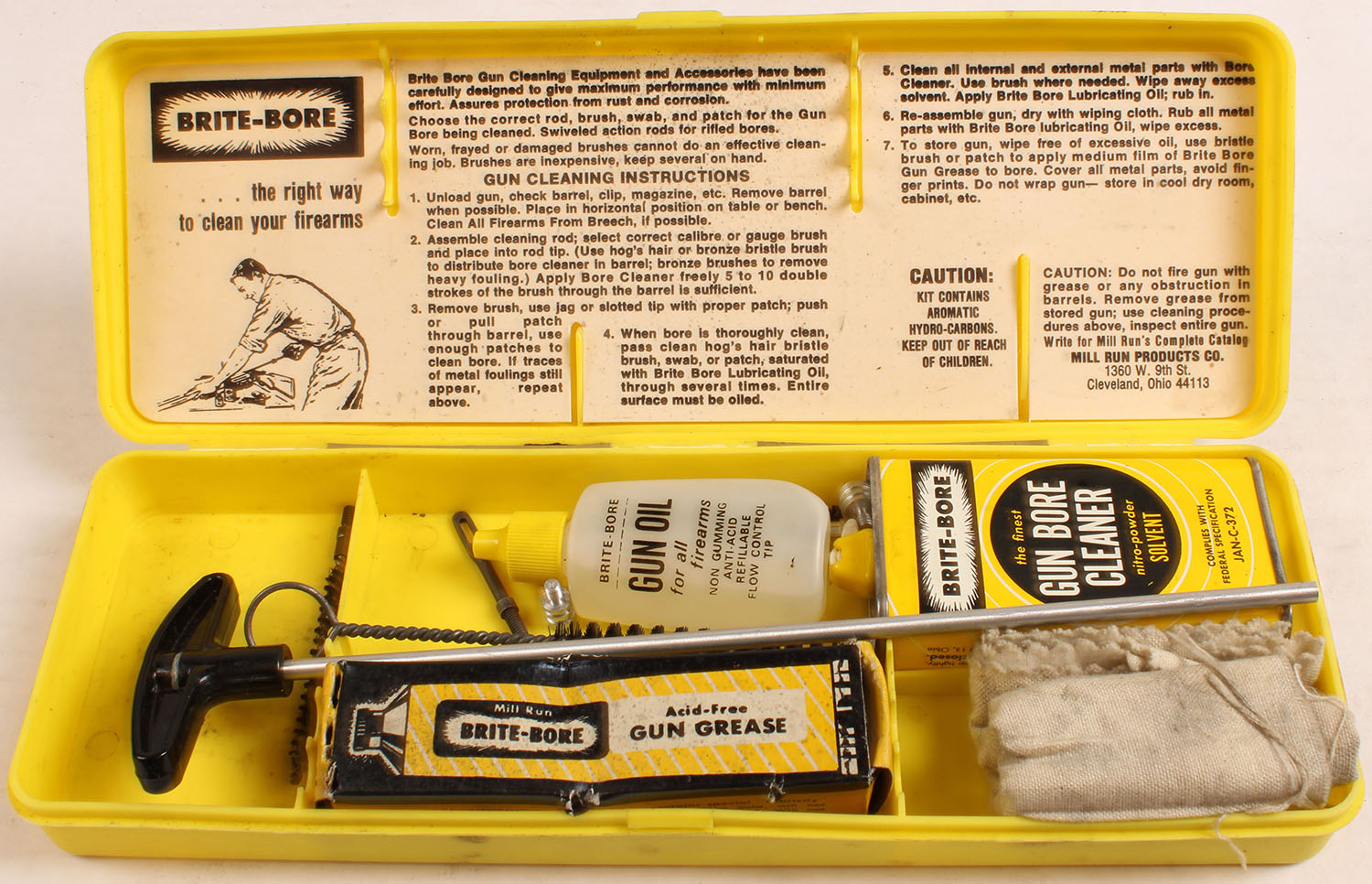 Brite-Bore rifle cleaning kit, FULL with oil tin, with cleaning patches, has age soiling Grade: Very Good + - Value: 2 to 20