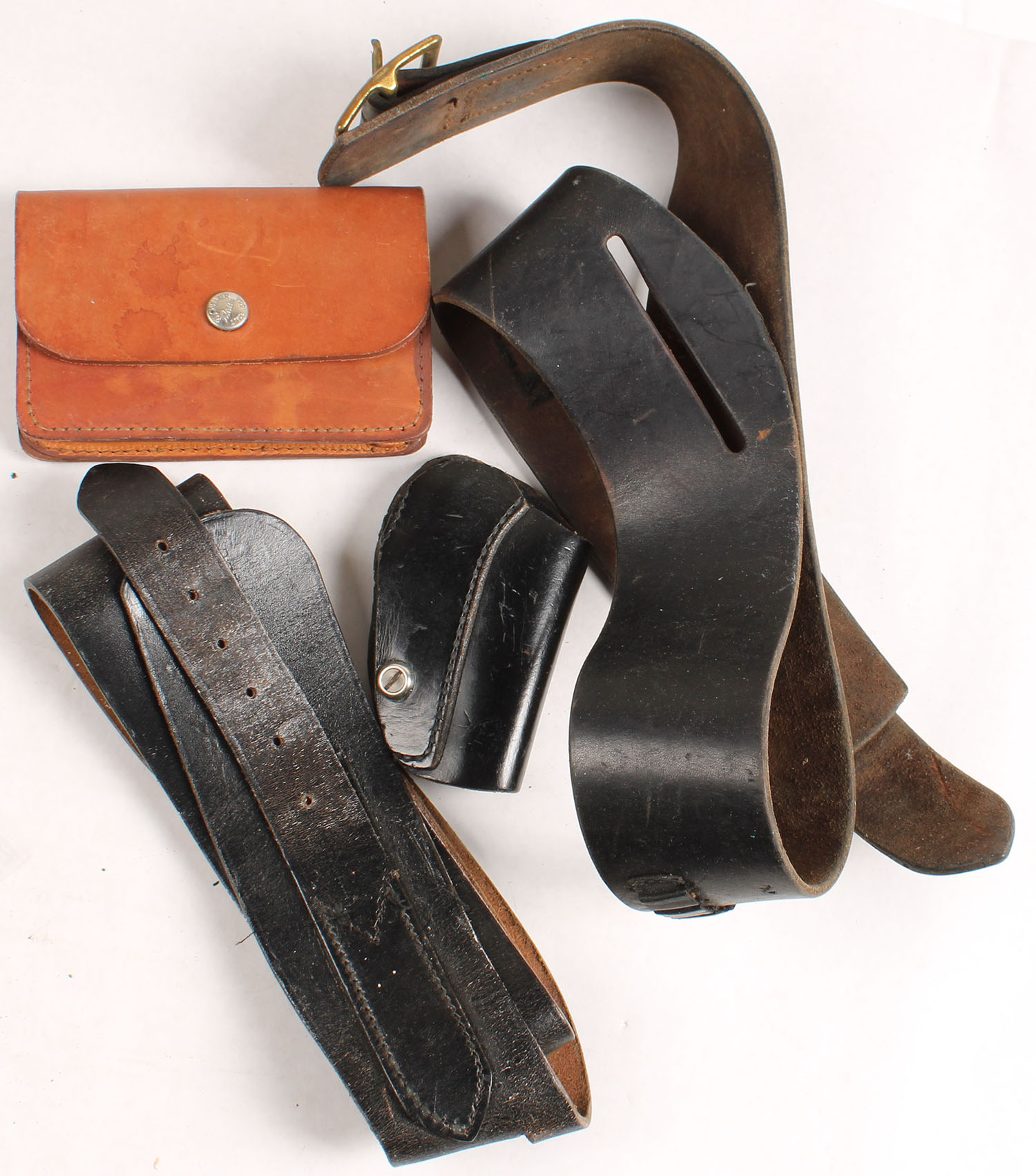 Lot of antique Leather belts and cart belt case. Grade: Excellent - Value: 10 to 50