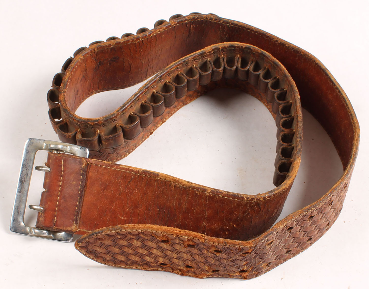 Antique Leather cart. belt, with intricate tooling throughout belt. Grade: Very Good ++ - Value: 16 to 50