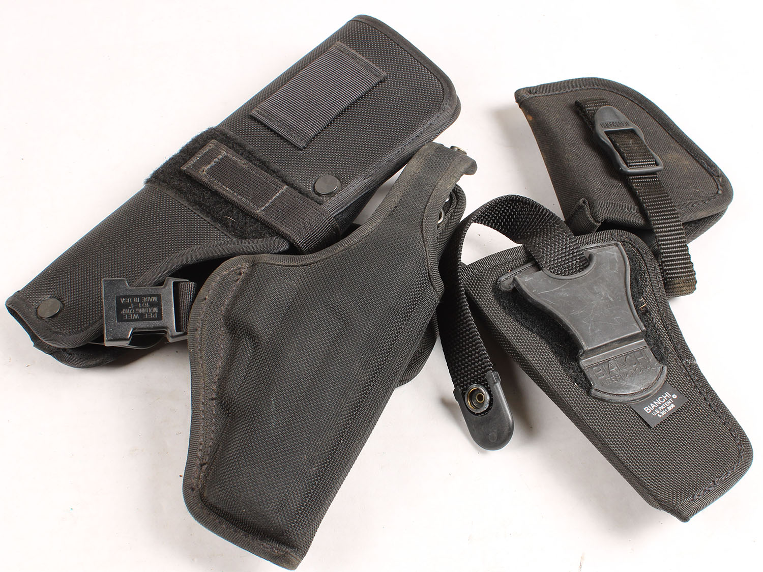 Lot of hard plastic and nylon pistol holsters. Grade: Very Good ++ - Value: 10 to 60