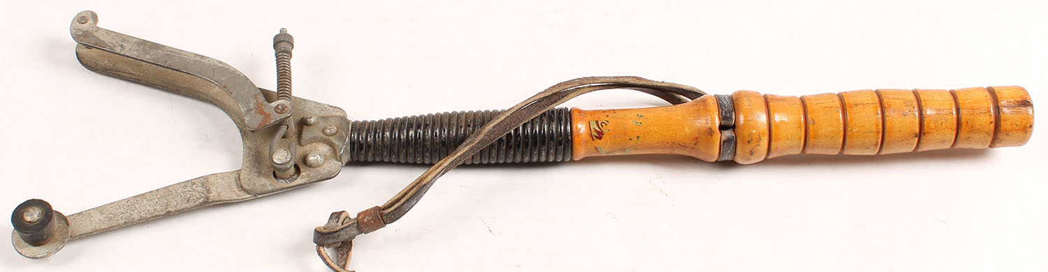 Remington hand trap thrower. Has age soiling. Grade: Very Good + - Value: 2 to 20