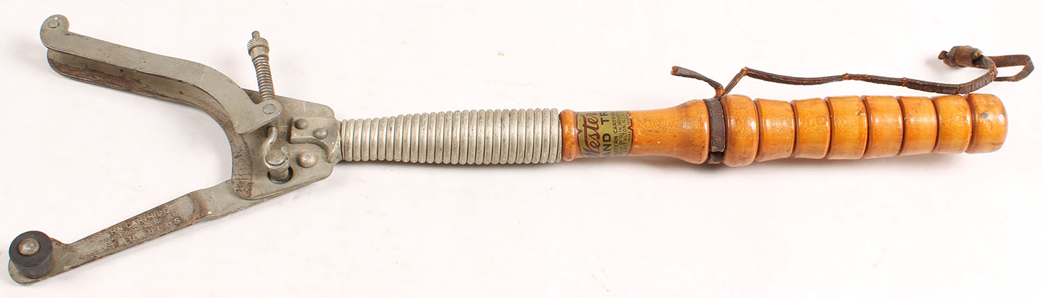 Western hand trap thrower. Has age soiling. Grade: Very Good + - Value: 4 to 20