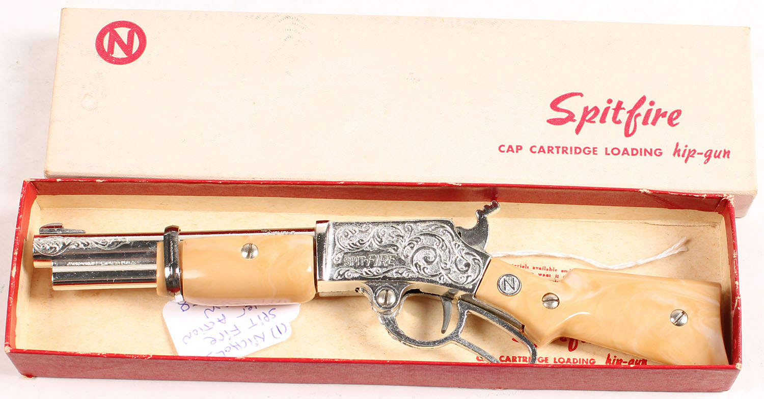 Nichols/Stevens RARE ''SpitFire'' lever action cap gun made in 1958, in orignal box, hard to find! Grade: Excellent ++ - Value: 40 to 300