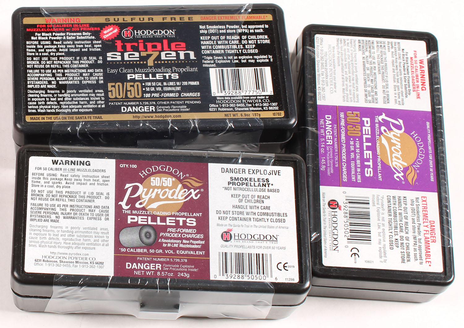 Lot of 3 Hodgdon Pyrodex Sealed NOS muzzleloading .50 cal charge pellets. Grade: Excellent ++ - Value: 10 to 50