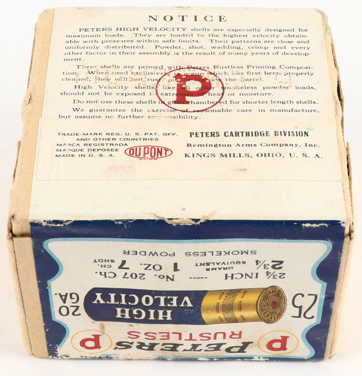 | Peters Cart. Co., Blue Bill, 20ga., 2pc., FULL & SEALED, shot s...
