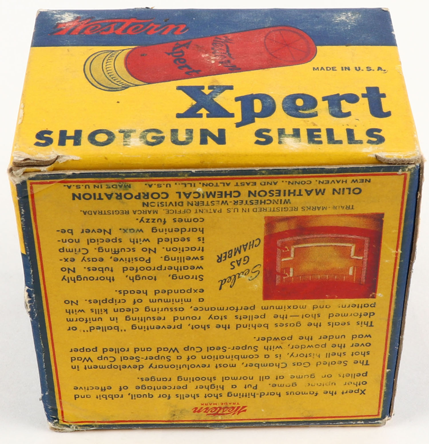 Western, Xpert, 20ga., 2 3/4'', 1pc., Full, shot size 8, multi-colored box, box is very solid with great colors, paper shells are excellent. Grade: Excellent - Value: 10 to 30