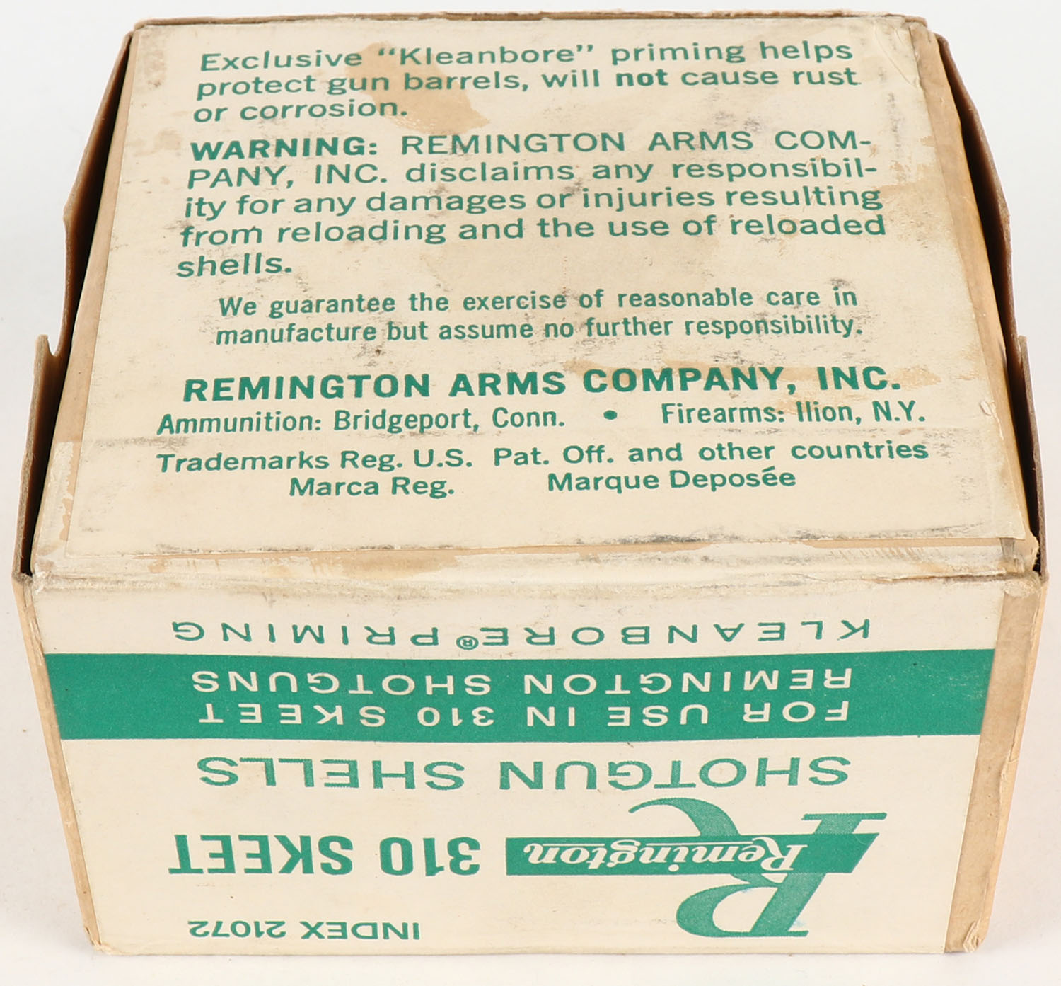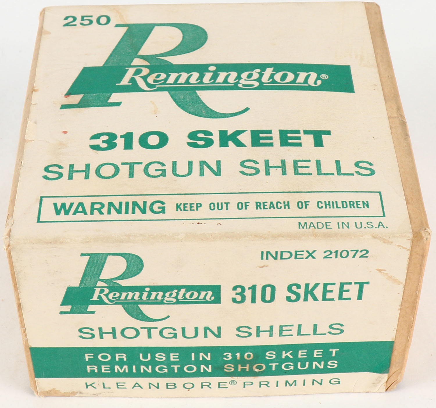 Remington, 310 SKEET, Shotgun Shells, 2pc., FULL & HALF SEALED, buff box with green and buff label, box is very solid. Grade: Excellent + - Value: 100 to 300