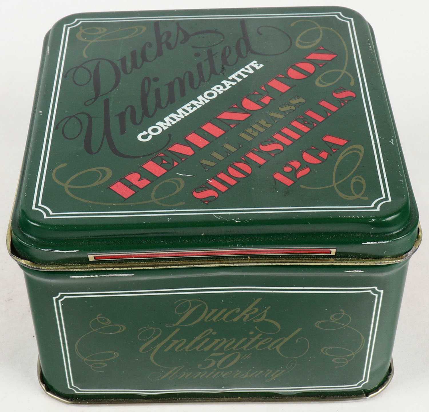 Duck Unlimited Commemorative Remington All Brass Shotshells 12ga., Full, metal tin has very good graphics with great color, shells are MINTY. Grade: Excellent ++ - Value: 40 to 100