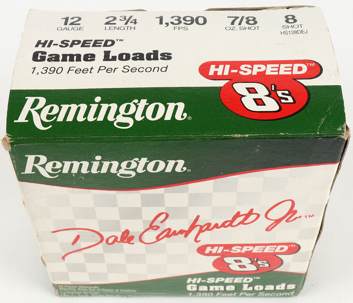 Remington, Hi-Speed Game Loads, 12ga., 1pc., Full, 2 3/4'', shot size 8, multi-colored box, plastic shells are excellent. Grade: Very Good ++ - Value: 10 to 30