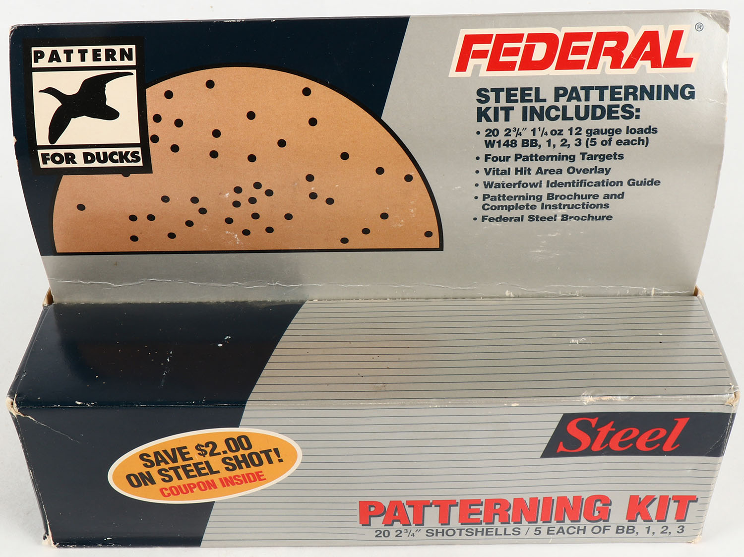 Federal, Steel Pattering KIT, 12ga., 2 3/4'', 1pc., Full, shot sizes BB,1,2,3, multi-colored box, KIT includes Pattern Targets, Brochures, etc. Grade: Very Good - Value: 20 to 100