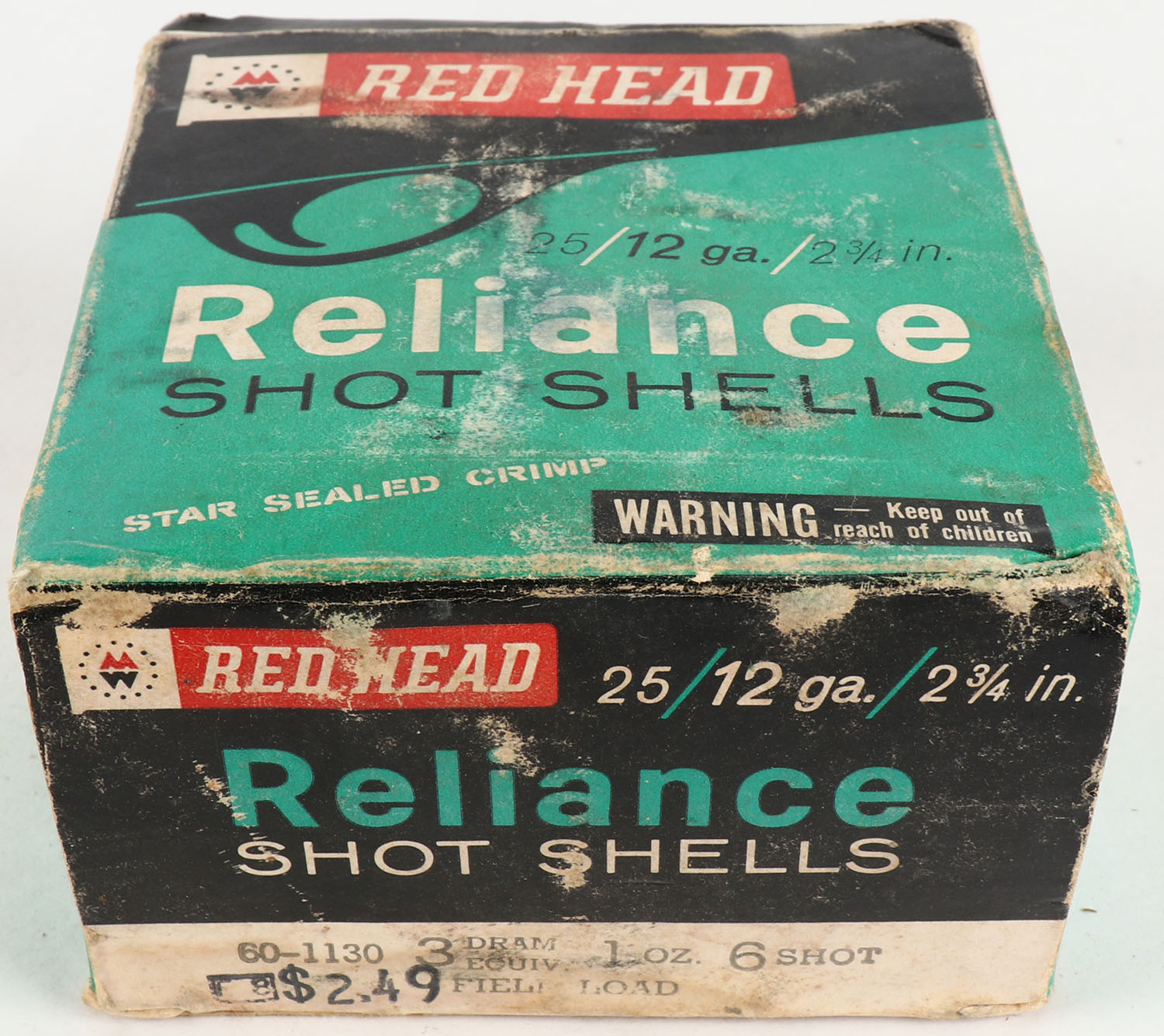 Montgomery Ward Red Head, 12ga., 1pc., Full, shot size 6, box has age soiling with scuffing, paper shells are excellent. Grade: Good ++ - Value: 10 to 30