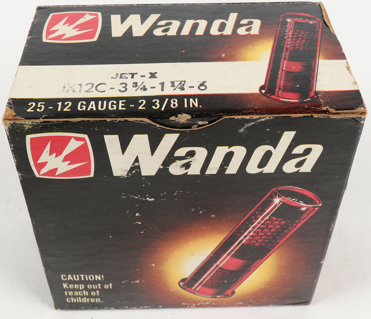 Wanda, 12ga., 1pc., Full, shot size 6, multi-colored box, box has light scuffing, shells are excellent. Grade: Very Good ++ - Value: 10 to 30