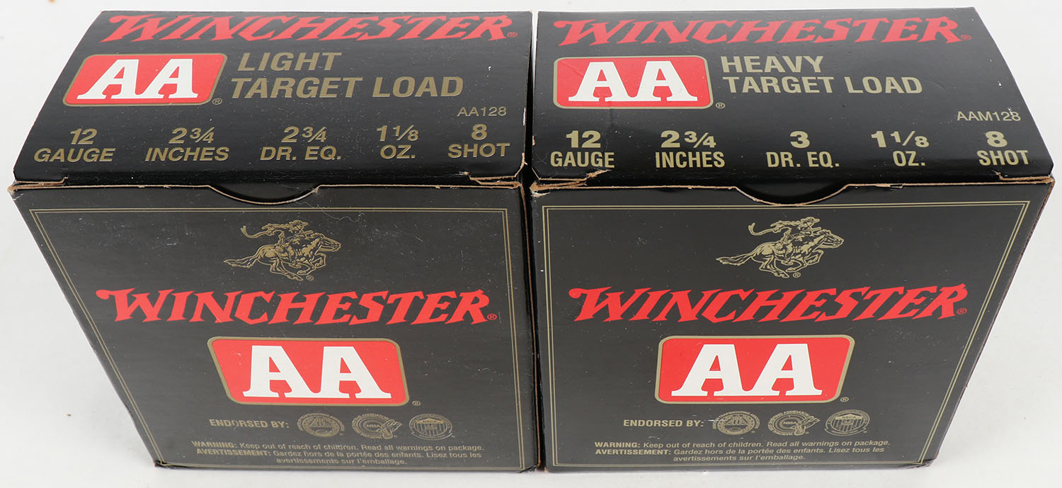 Lot of 2 Winchester, 12ga., 1pc., Appears Full, shot size 8, multi-colored boxes. Grade: Excellent + - Value: 10 to 40