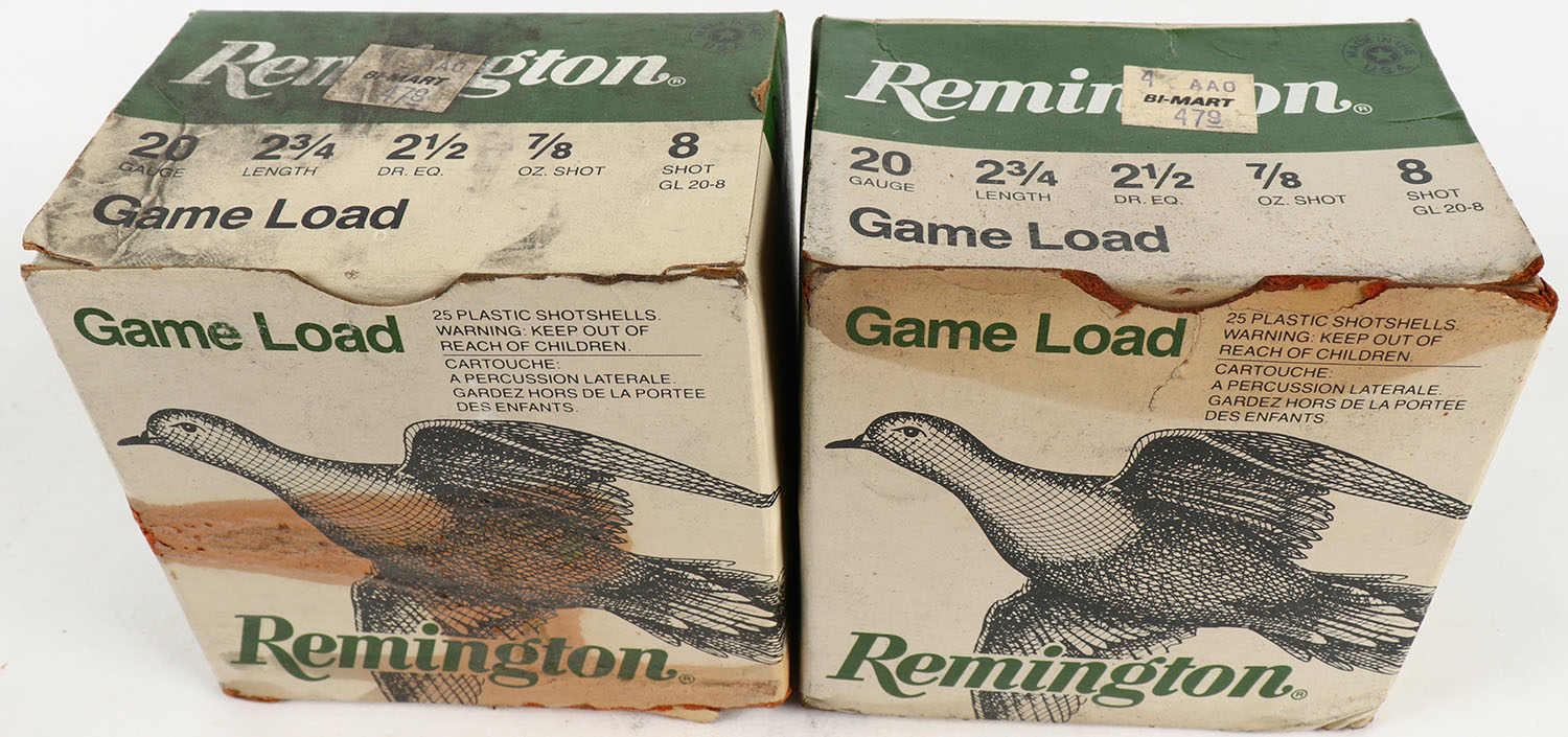 Lot of 2 Remington, 20ga., 1pc., shot size 8, multi-colored boxes. Grade: Good ++ - Value: 10 to 40