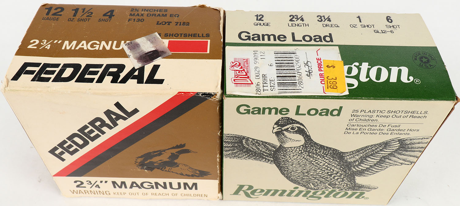 Lot of 2, Mixed Manufacture, 12ga., Appears Full, shot size 4 & 6, Shotshell boxes. Grade: Very Good - Value: 10 to 30