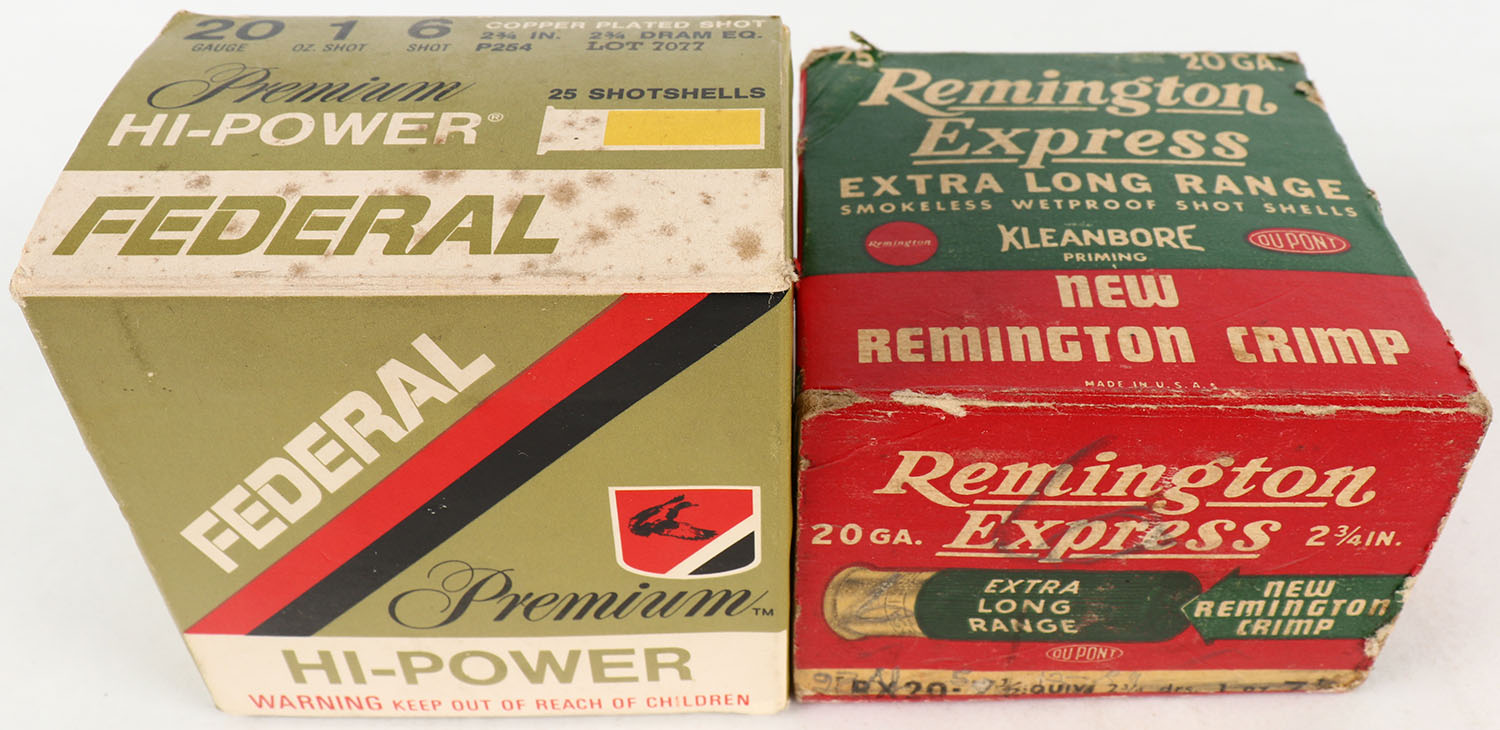 Lot of 2, Mixed Manufacture, 20ga., Appears Full, shot size 6 & 7 1/2, Shotshell boxes. Grade: Good ++ - Value: 8 to 30