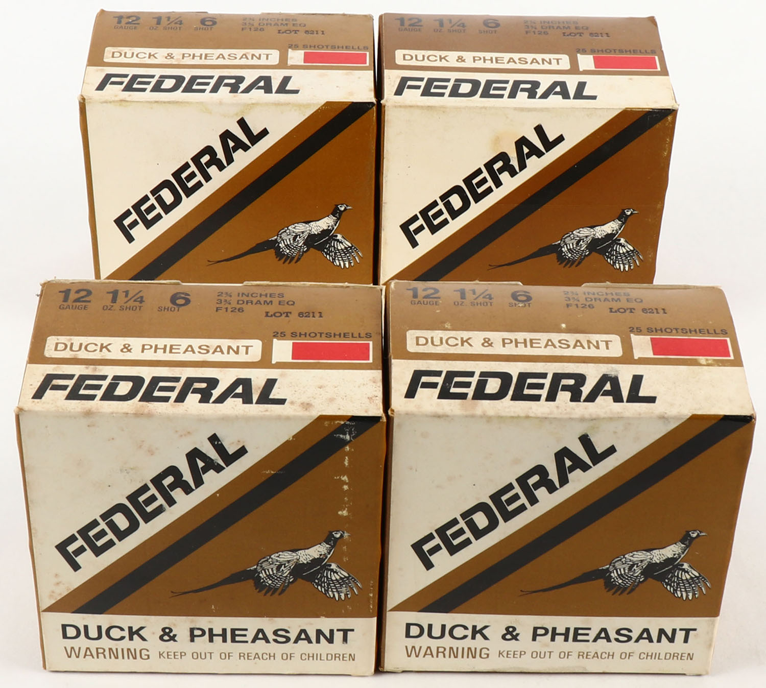 Lot of 4 Federal, 12ga., Appears Full, Shotshell Boxes. Grade: Very Good ++ - Value: 10 to 40