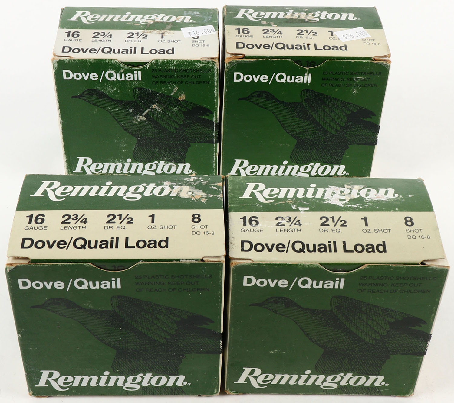 Lot of 4 Remington, 16ga., Appears Full, Shotshell Boxes. Grade: Very Good ++ - Value: 10 to 40