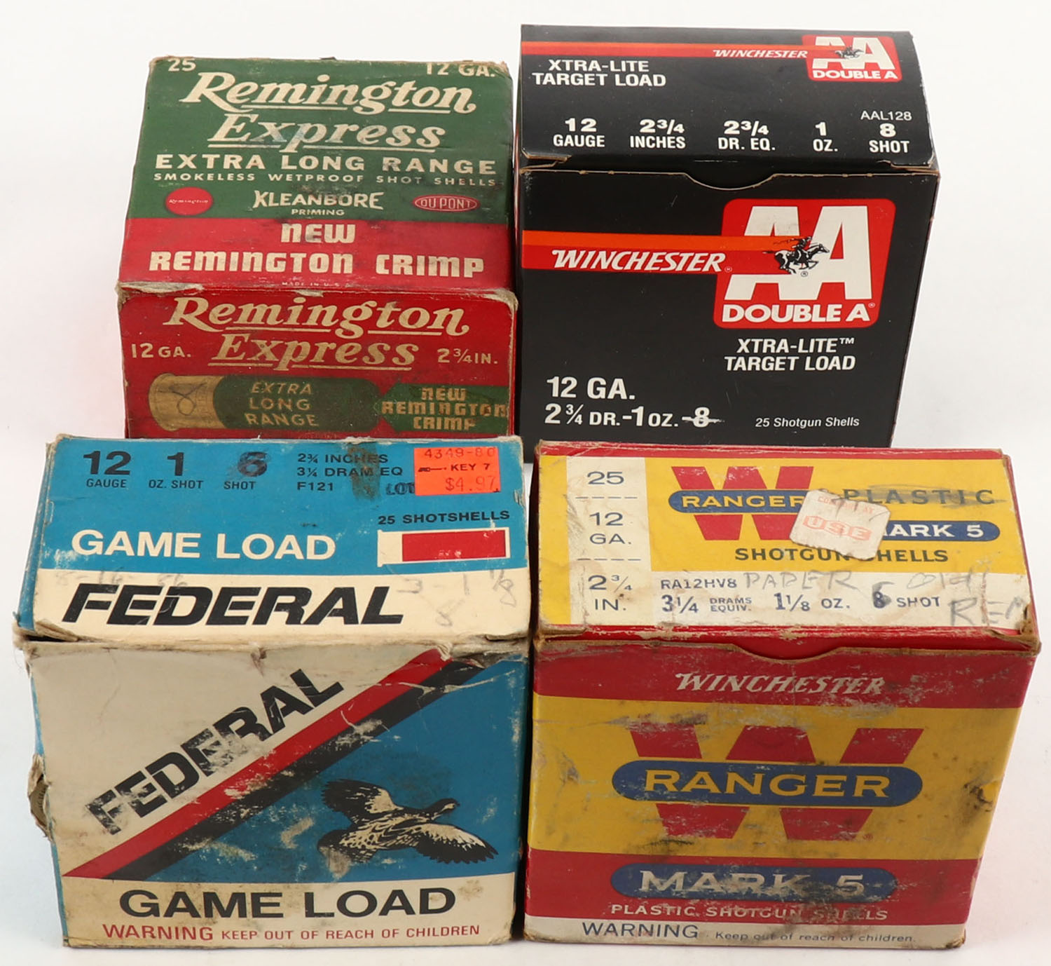 Lot of 4, Mixed Manufacture, 12ga., Appears Full, Shotshell Boxes. Grade: Good ++ - Value: 10 to 40