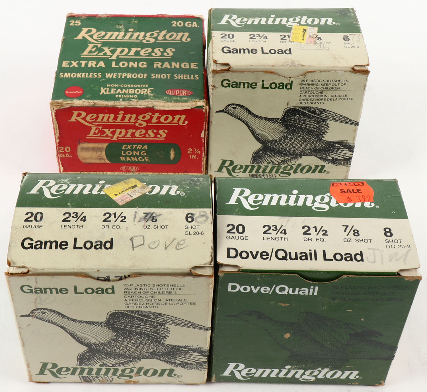 Lot of 4 Remington, 20ga., Appears Full, Shotshell Boxes. Grade: Very Good - Value: 10 to 40