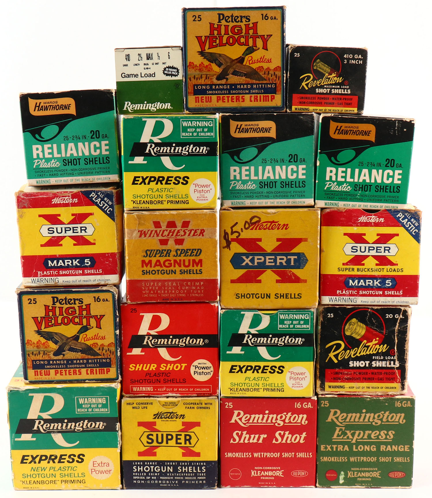 Large lot of mixed Manufacture empty Shotshell boxes, Comes with Western Case box. Grade: Good ++ - Value: 2 to 60
