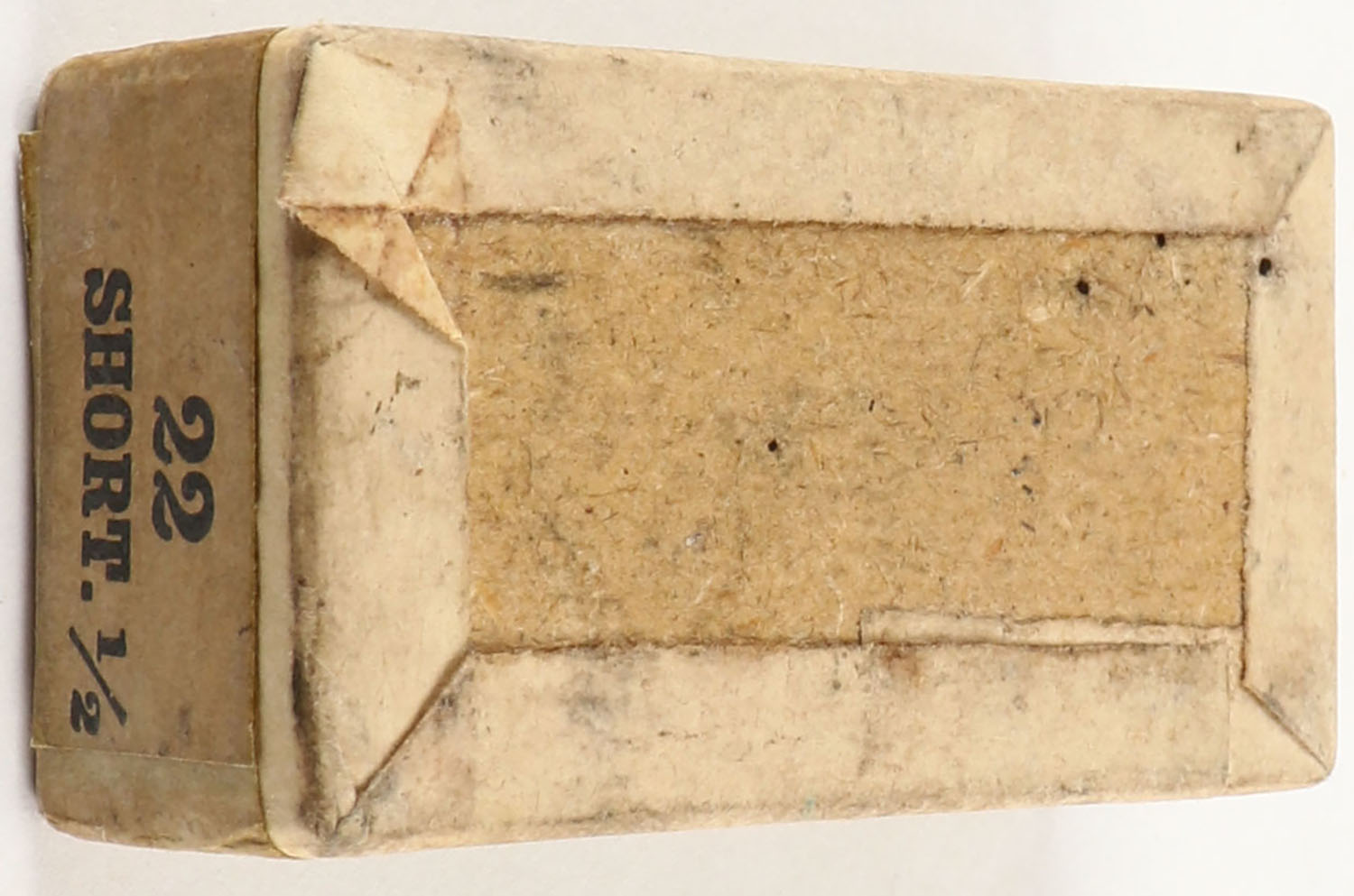 Winchester, Rifle Cartridges, Oct. 24 Patent date, .22 Short, RR: WRA-37 S-10e. FULL & SEALED 2pc. Buff box with green top & side sealing labels, box is solid with excellent color, very minor age soiling & shelf wear, very minor edge & corner wear, labels are intact. Grade: Excellent - Value: 150 to 450