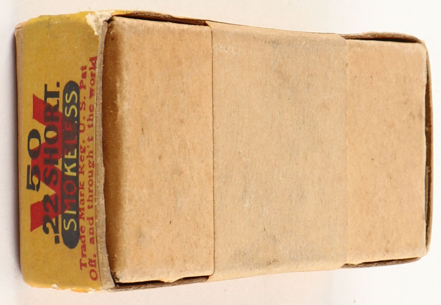 Winchester, Smokeless Rifle Cartridges, RR: WRA-59S 27a, Full, 2pc. Buff box with green top & orange side sealing labels, box is solid with very good to excellent color, minor age soiling, corners are mostly sharp, edges are crisp, labels are intact. Grade: Excellent - Value: 50 to 250