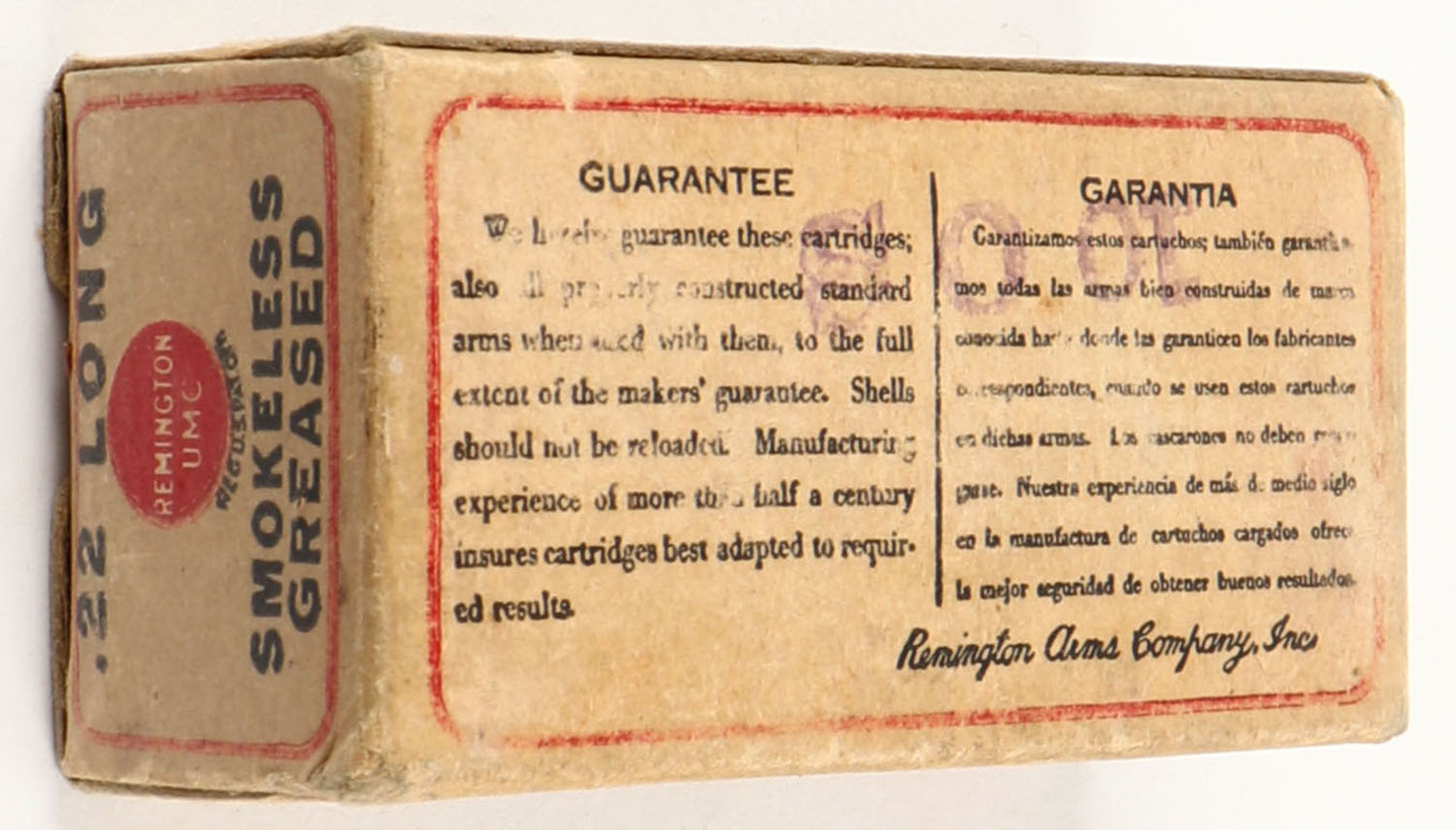 | REM-UMC, R.F. Smokeless Cartridges, .22 Long, Greased, RHWeb: RE...