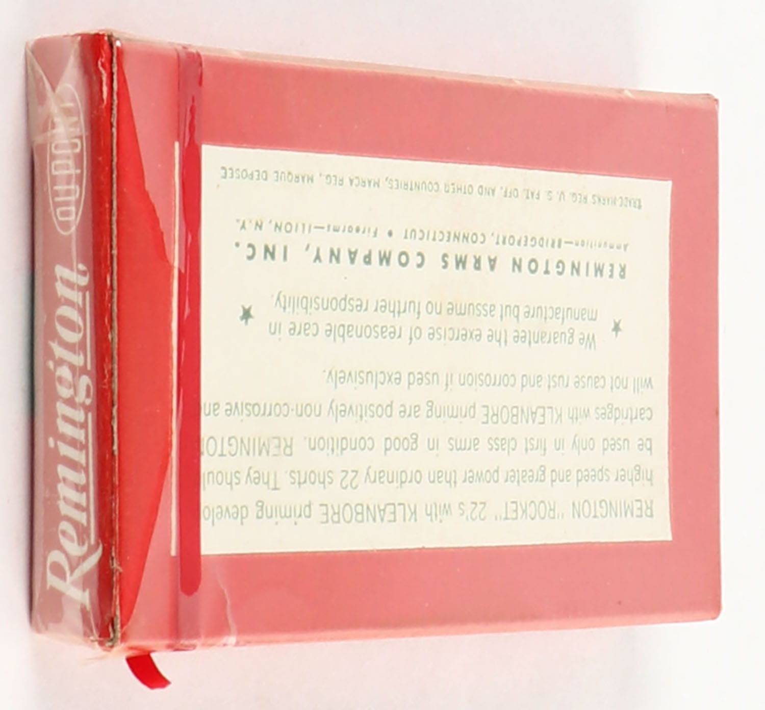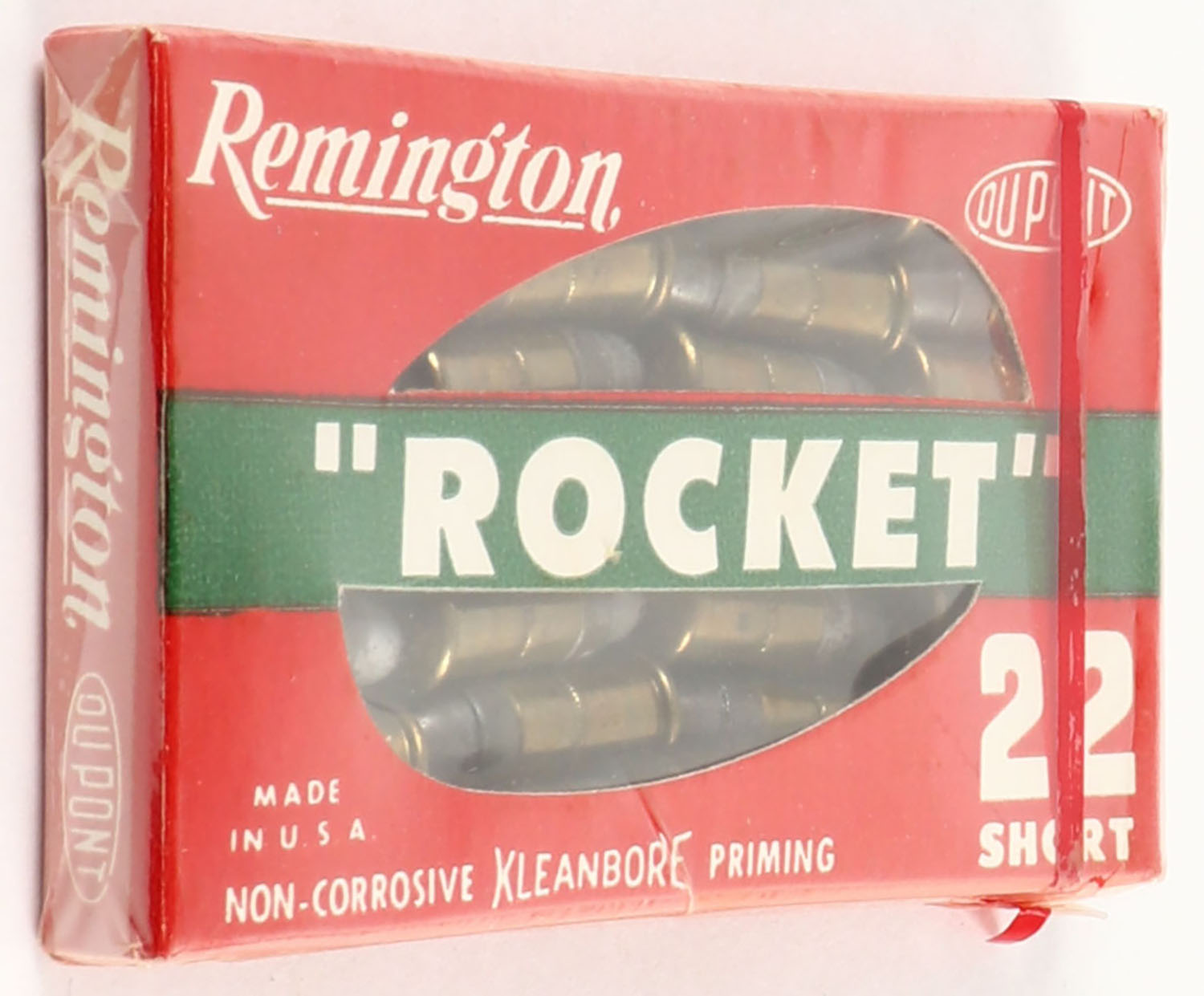Remington, ''Rocket'', .22 Short, RHWeb: REM-14 S-5, FULL & SEALED, 1pc. Red green & white box, box is MINT with minty color, corners are sharp, edges are crisp, ammo appears minty. Grade: MINT - Value: 30 to 90