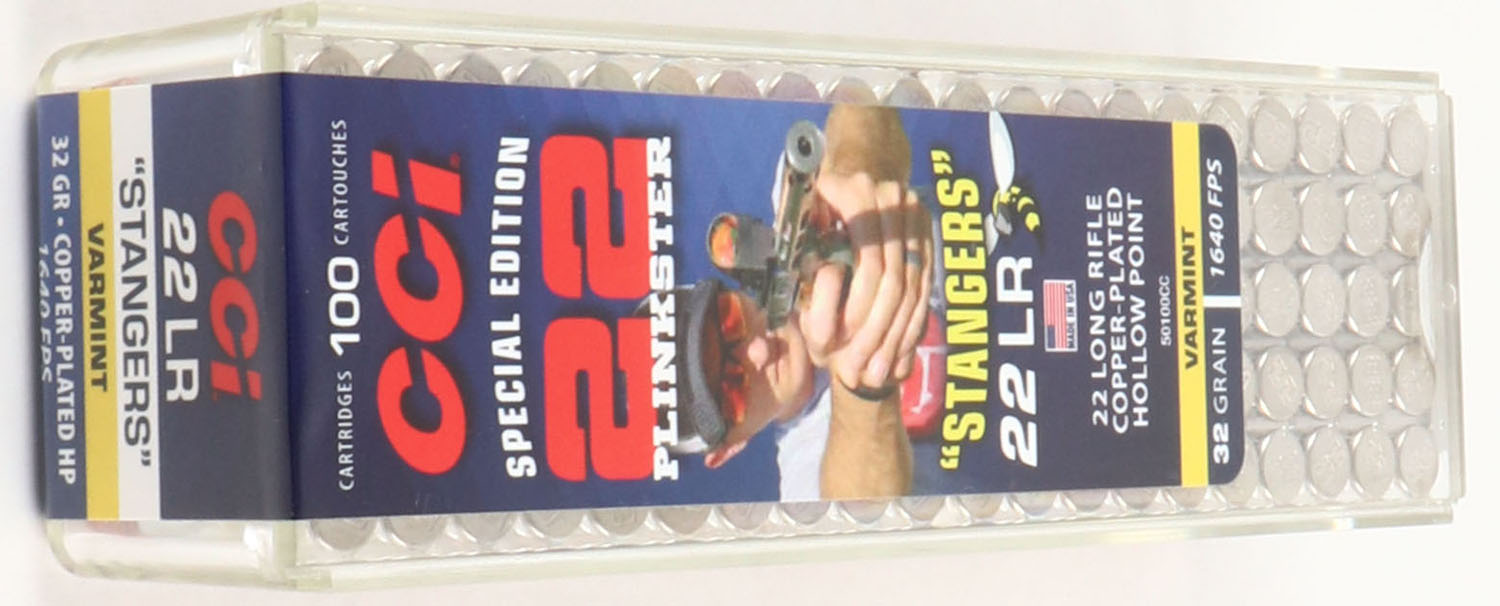 CCi, 22 Plinkster Special Edition ''Stangers'', .22 Long Rifle Stinger, FULL & SEALED, 2pc. Clear plastic tray with multi-colored sealing label, box and label are MINT with mint color, ammo appears mint. Grade: MINT - Value: 10 to 50