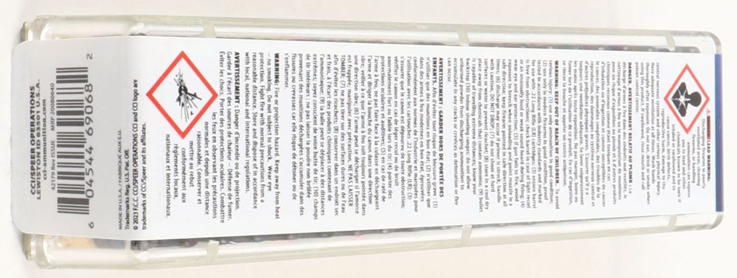 CCi, OEM, .22 Long Rifle, 40 Grain Lead Round Nose, FULL & SEALED, 2pc. Clear plastic tray with blue sealing label, box is MINT, label is intact with minty color, ammo is mint. Grade: MINT - Value: 16 to 60