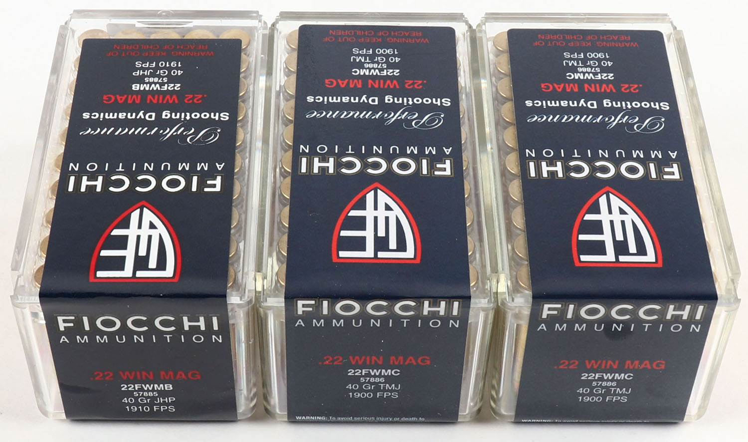 Fiocchi, lot of (3) boxes, all full & sealed. Grade: MINT - Value: 16 to 60