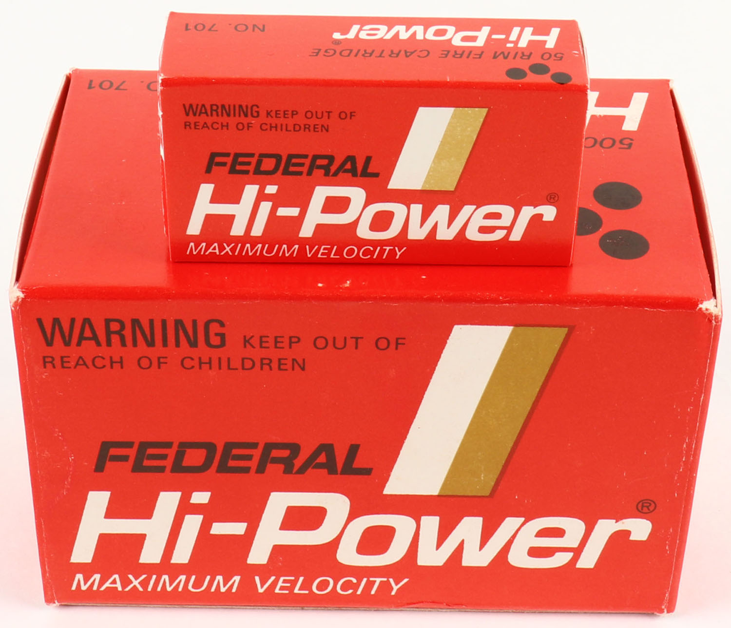 Federal, Hi-Power, .22 Short, Full, 500rds., 1pc. Red & white brick, brick is near mint with minty color, only very minor corner wear, edges are crisp, end flaps are solid, inside boxes are minty. Grade: Excellent ++ - Value: 40 to 120