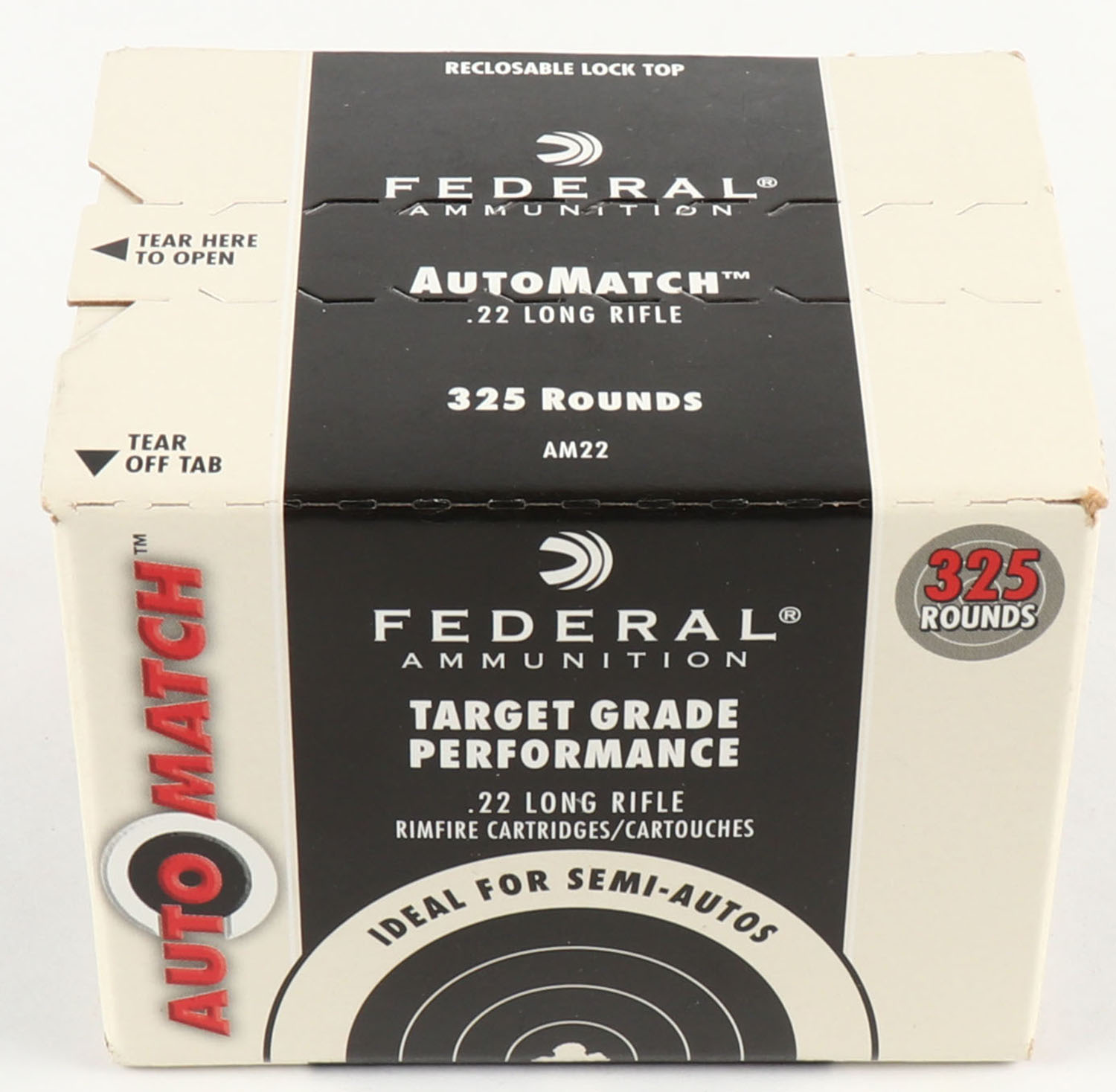 Federal, Auto Match, .22 Long Rifle, 40 Gr. Solid, 1200 FPS, FULL & SEALED, 325rds., 1pc. Black white & red bulk box, box is MINT with minty color, corners are mostly sharp, edges are crisp. Grade: MINT - Value: 10 to 50